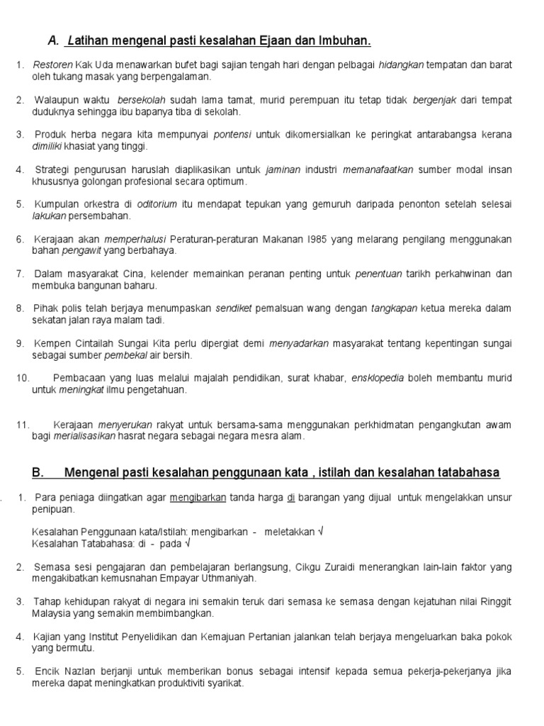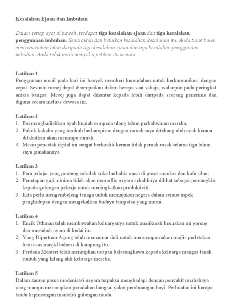 Latihan Mengenal Pasti Kesalahan Ejaan Dan Imbuhan Pdf