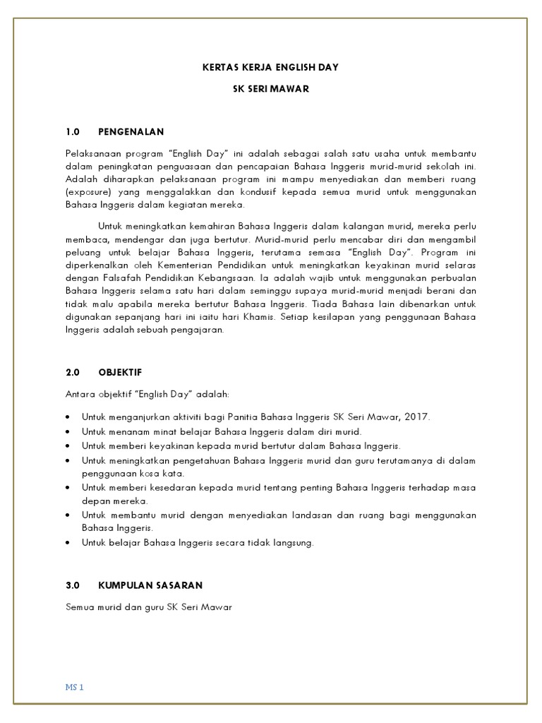 Kertas Kerja English Week Contoh Dan Panduan Pelaksanaan